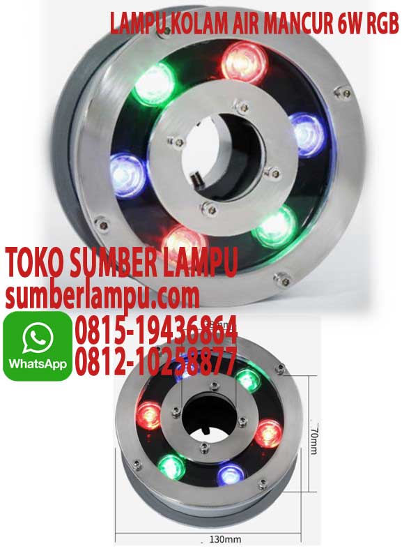 Lampu Air Mancur 6W LED RGB 12V DC, desain yang kokoh, berbahan material steinless steel tahan karat serta mempunyai proteksi IP68.