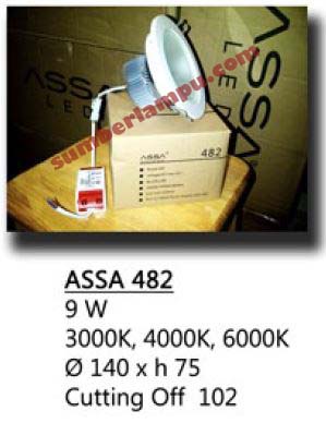 Lampu Downlight ASSA dengan watt bervariasi menyesuaikan kebutuhan penerangan Anda, dengan chip LED berkualitas terbaik dan distribusi cahaya maksimal serta driver original yang mempunyai daya kinerja tinggi lampu merk ASSA downlight series ini terdiri dari LED ASSA 462, LED ASSA 571, LED ASSA 572, LED ASSA 582, LED ASSA 586, LED ASSA 682, LED ASSA 882, lampu yang hemat energi dan bebas merkuri dan sinar UV sehingga aman untuk keluarga.