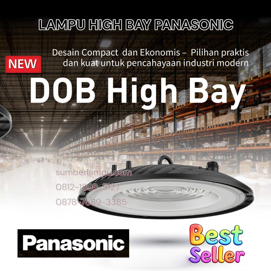 Lampu High Bay PANASONIC 100W 150W, desain compact, ekonomis, solusi handal lampu industri modern untuk workshop, gudang & sebagainya.