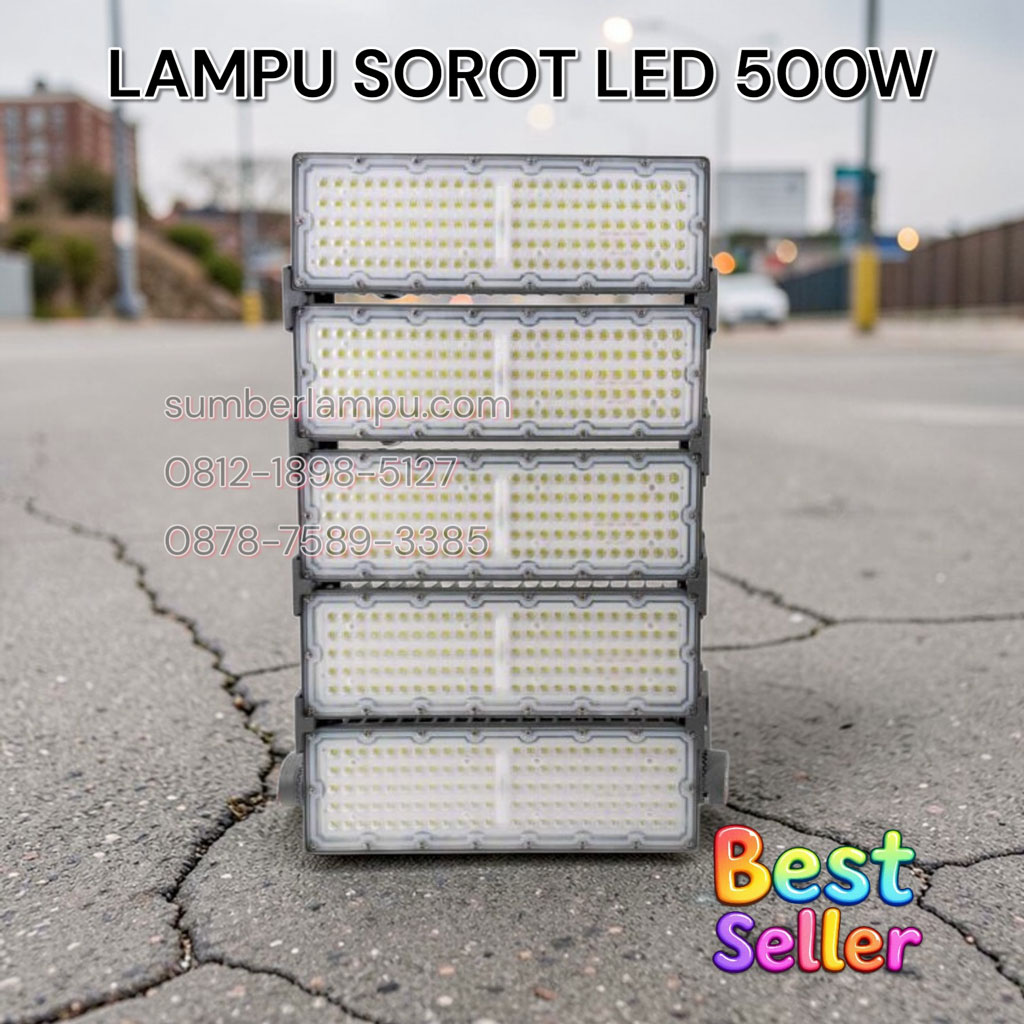 Aspek Lampu Sorot LED 500W Metal Halide 500W Konsumsi Daya 500W 500W + ballast ~50W Lumen Output 60.000 Lm 45.000-50.000 Lm Efisiensi 120 Lm/W 90-100 Lm/W Umur Pakai 50.000 jam 8.000-12.000 jam Start Time Instant 5-15 menit Maintenance Minimal Frequent Biaya Operasional Lebih murah Lebih mahal ---