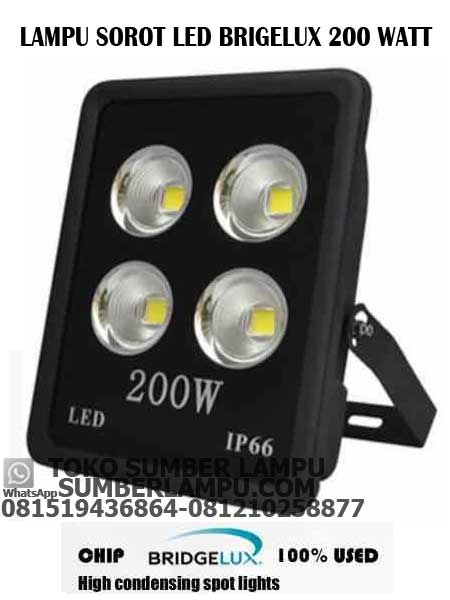 Lampu Sorot LED Brigelux 200 watt, produk berkualitas untuk solusi penerangan penerangan outdoor indoor dengan proteksi IP66 waterproof dan dustproof.