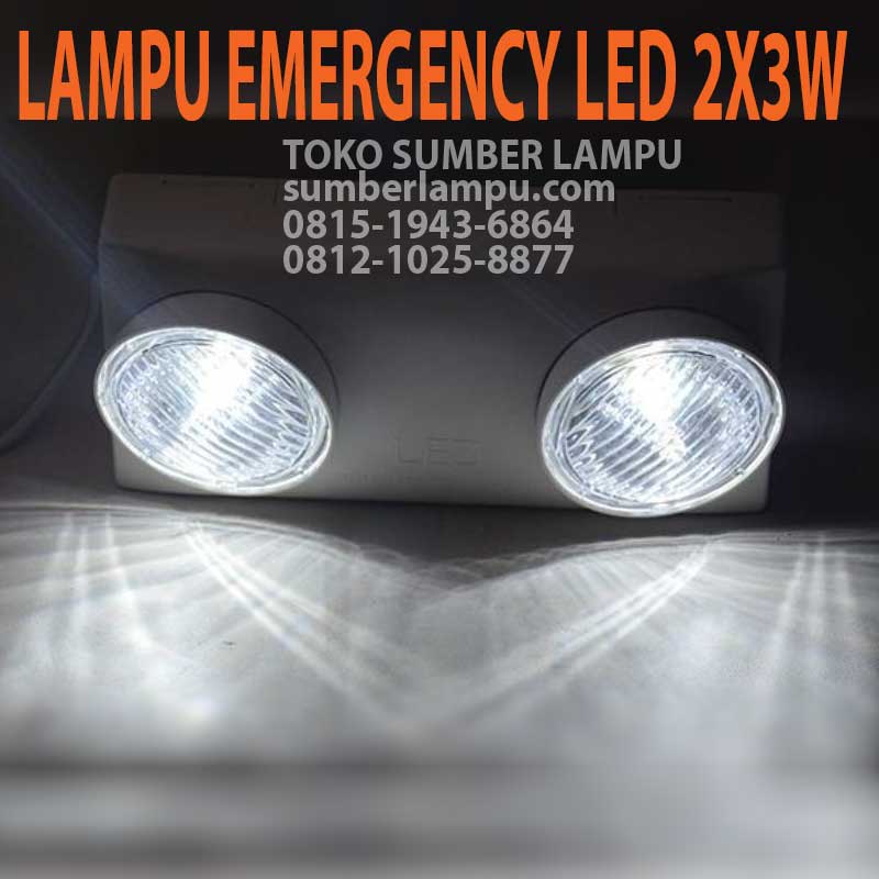 Lampu Emergency LED Dinding Tembok 2x3W, perangkat pencahayaan didukung baterai menyala otomatis ketika gedung mengalami pemadaman listrik.