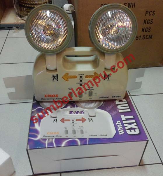 CMOS CS-262 lampu emergency Mata Kucing ( Cat Eye ) adalah lampu emergency halogen dengan 2x10 watt, durasi 2 lampu mencapai 4 jam & jika 1 lampu pemakaian 8jam, sangat hemat energi, jika dalam keadaan emergensi ( padam listrik ) memadai untuk 10 watt, bisa juga digunakan pekerjaan outdoor mekanik yang membutuhkan penerangan di lokasi pedalaman.