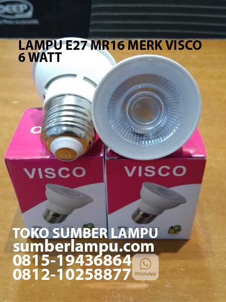 Lampu MR16 merk Visco 6 watt COB dengan chip onboard lumen output 80 lm per watt tersedia cahaya 3000K dan 6000K berdaya pakai 50.000 jam.
