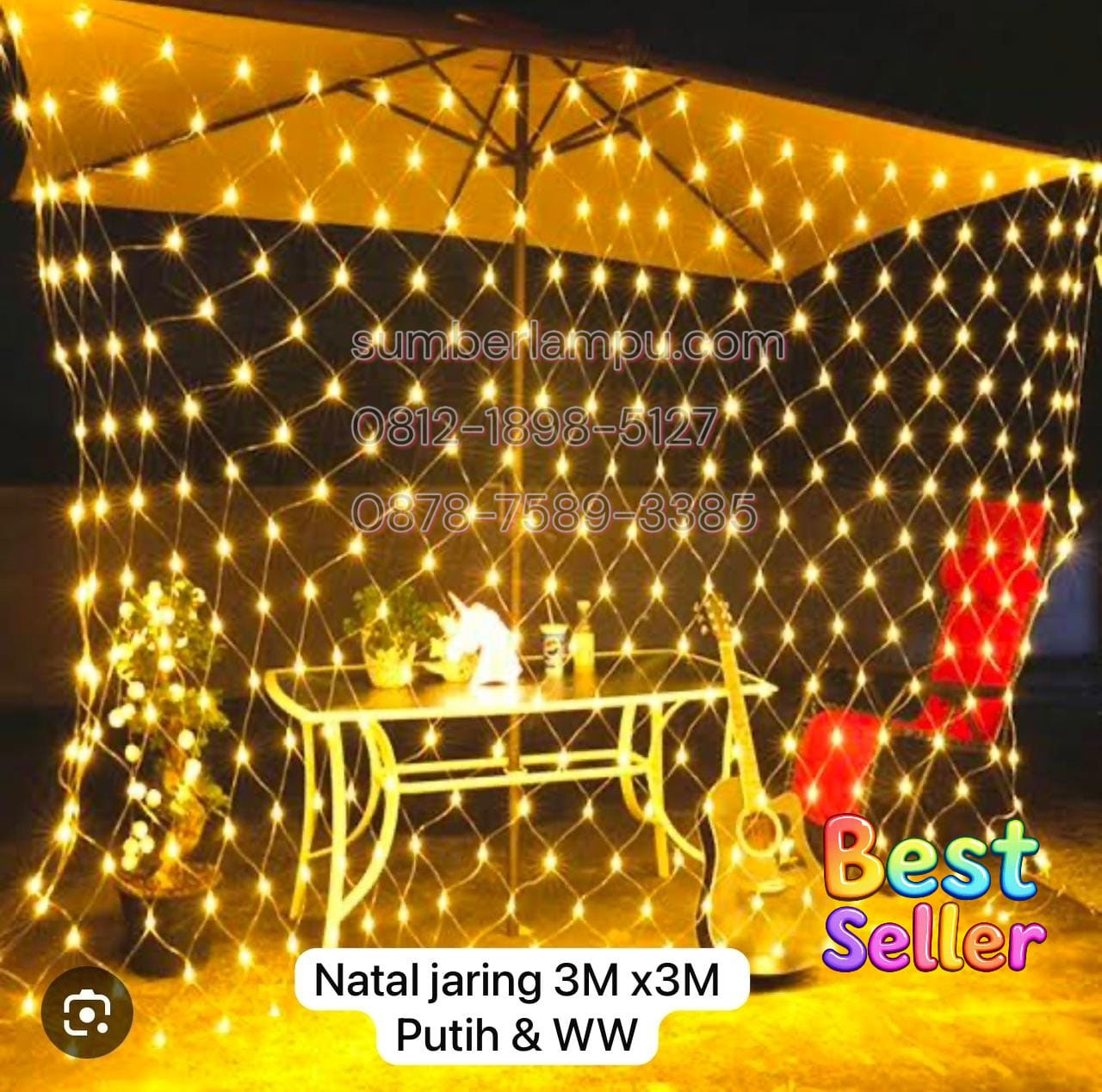 Lampu Natal Jaring 3x3M LED Terbaru, tersedia warna kuning & putih, harga terjangkau, sangat ideal untuk dekorasi taman, pohon natal dsb.