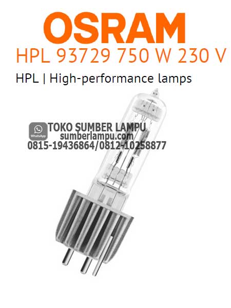 Lampu HPL Osram 93729 Halogen 750 watt, jenis lampu halogen berkinerja tinggi, optimal digunakan untuk menghasilkan cahaya spot / fokus.