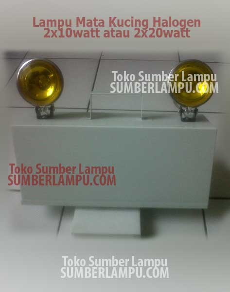 Lampu mata kucing halogen 2x10 watt 2x20 watt adalah lampu penerangan darurat dengan dua mata jenis lampu halogen 10watt atau 20watt, cahaya terang dan produk realible dalam keadaan emergency jika gedung terjadi pemadaman lampu. Walau dengan watt yang besar daya durasi lampu tetap 1~2jam dan merupakan standar keamanan suatu gedung untuk mempunyai lampu emergency.