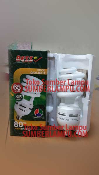Lampu spiral 65watt adalah merupakan lampu hemat energi untuk penerangan umum lampu model ulir juga sering disebut twister, dengan 65watt setera 325watt lampu konvensional sampai 80% hemat energi. Lampu jenis ini sangat fleksible karena dapat dipakai untuk penerangan rumah, gudang, tempat usaha atau toko, atau sebagai penerangan restoran bahkan banyak juga dipakai lampu penerangan futsat.