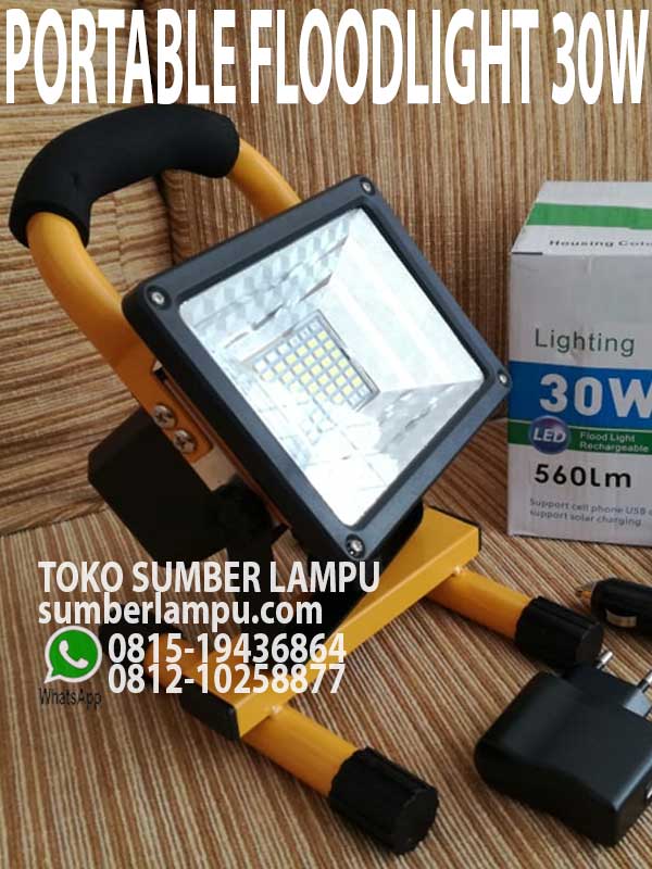 Lampu Floodlight Emergency 30W Rechargable, output 560lm, dapat dibawa-bawa dan dapat berfungsi sebagai penerangan darurat pekerjaan outdoor.