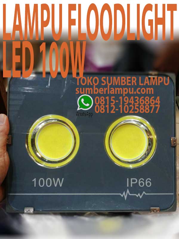 Lampu Floodlight LED 100W Chip Onboard IP66, versi ekonomis lampu tembak LED dengan power 2x50 watt & jenis lampu sorot waterproof.