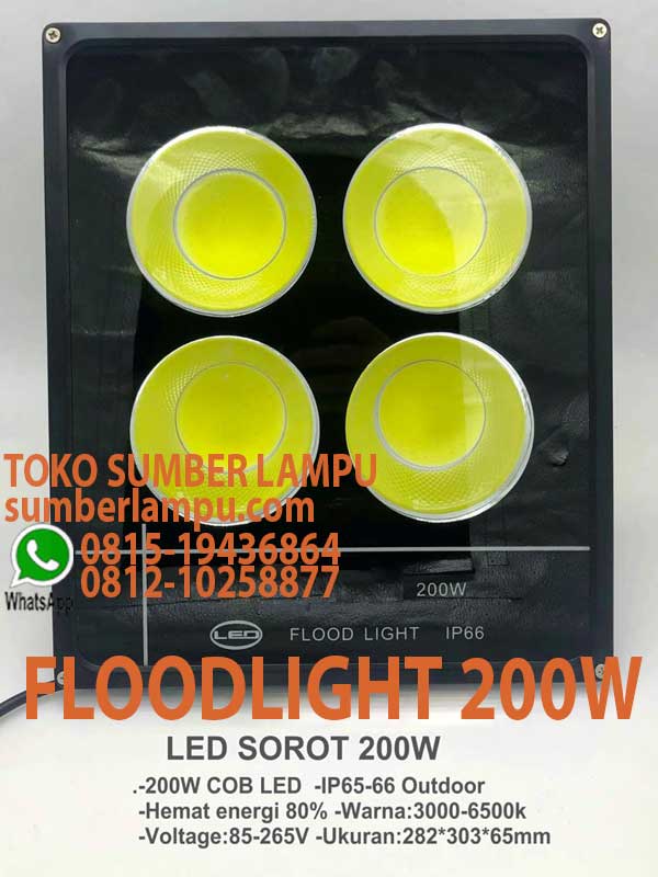 Lampu Floodlight LED 200W IP66 COB, jajaran lampu sorot harga ekonomis terjangkau, terang & stabil, handal dipakai indoor maupun outdoor.