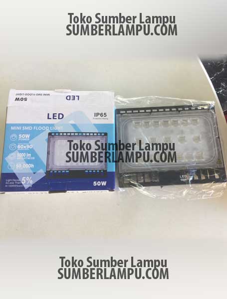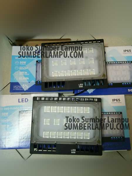 Lampu floodlight LED 50 watt dengan body tipis atau slim merupakan lampu sorot outdoor yang handal di luar ruangan aman terhadap air dan debu pada tingkat proteksi IP65, dengan chip LED mini SMD tingkat kecerahan pada 5000 lm. Lampu ini dapat handal untuk penerangan outdoor ataupun penerangan indoor dan jenis lampu hemat energi dan berdaya pakai sampai 50.000 jam.