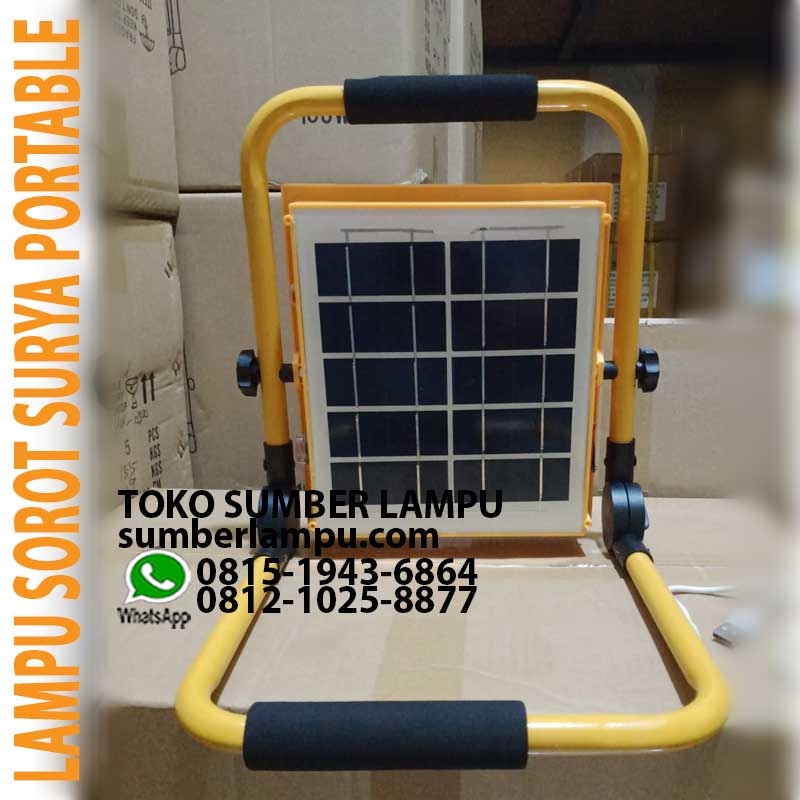 Mudah dipakai dan dipindahkan merupakan fitur utama lampu sorot solar portable ini selain itu juga output cahaya terang dan stabil.
