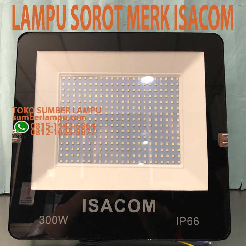 Lampu Sorot merk Isacom 300W SMD LED Waterproof IP66, harga terjangkau, handal dipakai kondisi lembab maupun berdebu serta hemat listrik.