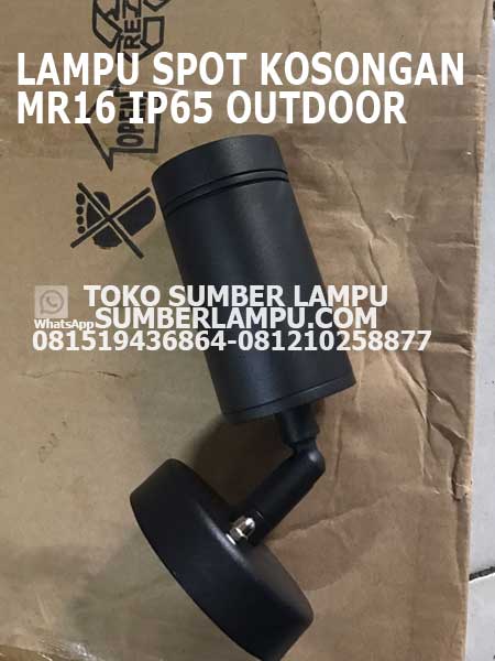 Lampu Spot Light Waterproof IP65 Body Hitam body hitam, armatur lampu menggunakan fitting base MR16 jenis lampu spot yang dapat dipakai outdoor dengan proteksi IP65 model base plafon atau di screw ke dinding, lampu yang didukung dapat jenis LED ataupun halogen.