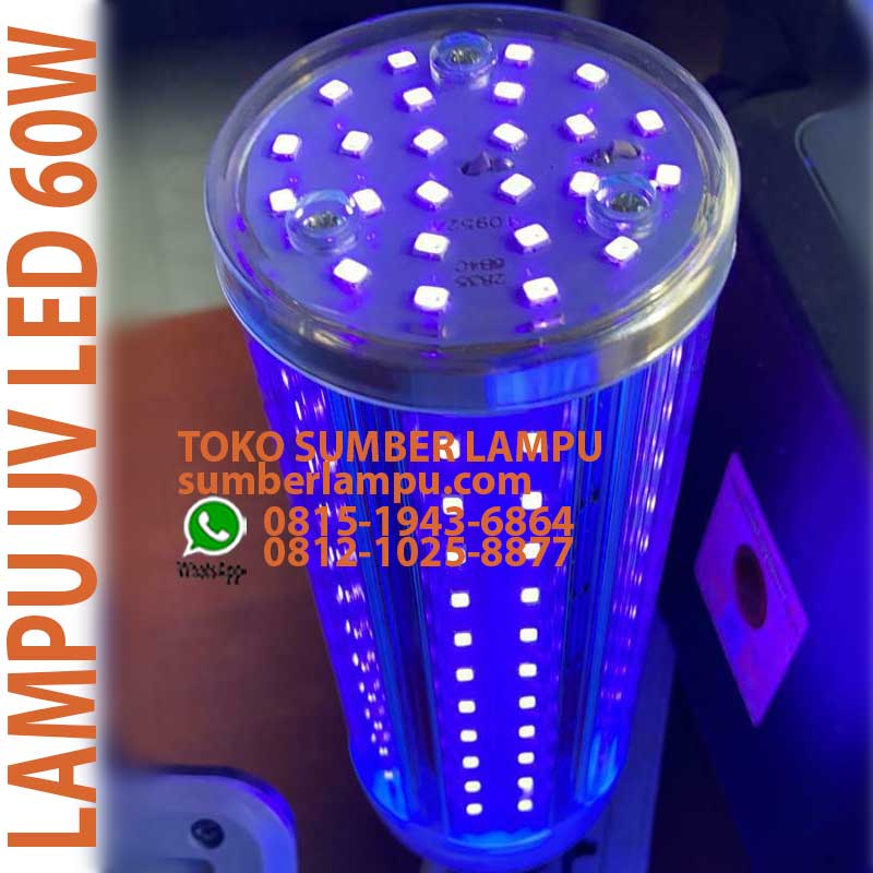 Lampu Sterilisasi Kuman LED 60 Watt, spesifikasi: LED 2835, dimensi 62*62*202 mm, voltage AC220V, base fitting E27 with remote controller.
