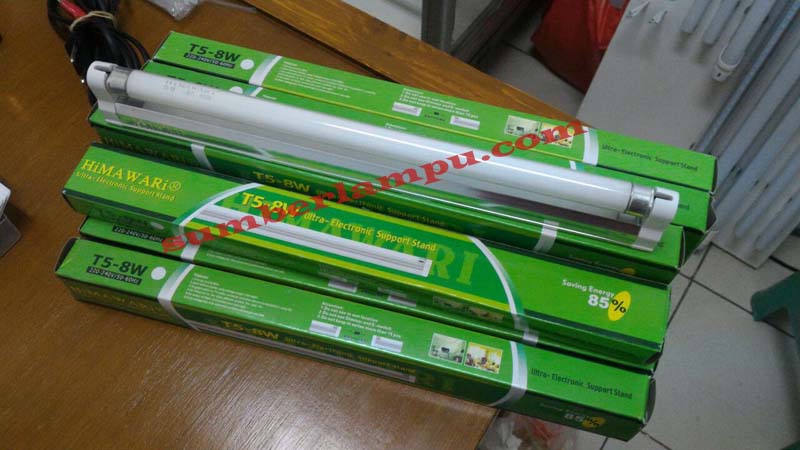 Lampu T5 8watt Merk Himawari dengan teknologi triphospor komplit set beserta rumah lampu & bracket tersedia 5 warna yakni putih, merah, hijau, biru, dan kuning. Lampu ini mempunyai penerangan flux 640 lumen, 220 volt AC.