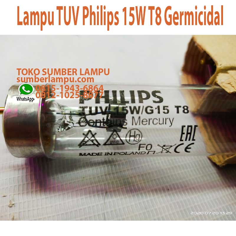 Lampu TUV Philips 15W T8 Germicidal, adalah lampu UVC (germicidal) berujung ganda, untuk purifier air atau desinfeksi udara.
