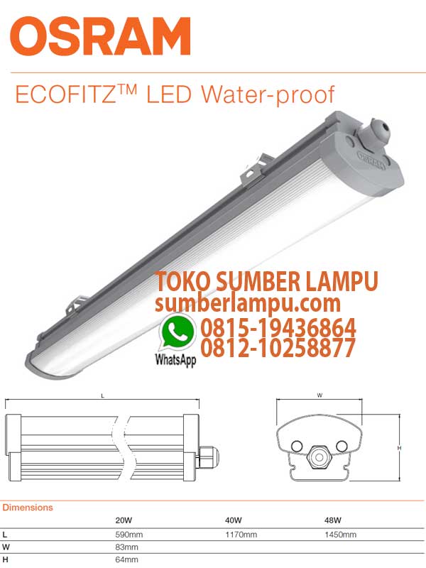 Lampu Waterproof Osram 40W Ecofitz, jajaran luminer handal dan kuat untuk lingkungan outdoor ekstrim terutama area lembab dan berdebu.